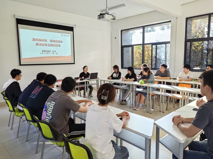 “廉润社区”。将廉洁文化融入“一站式”学生社区建设。二级基层党组织在学生社区开展“‘廉’接你我,清风自来”社区主题活动,开设专题廉洁党课,设置“红色读书角”,建设廉洁文化墙,出新廉洁黑板报。专职纪检监察干部深入学生社区,为学生骨干讲授廉洁教育班团课,引导学生干部充分认识廉洁文化建设的深刻内涵和重要意义,并在日常学习和工作中身体力行,弘扬廉洁文化,在青年学生干部心中种下廉洁种子。下一步,将优秀廉洁文化作品在社区作集中展示,以润物无声的“浸入式”教育助推“一站式”学生社区建设。